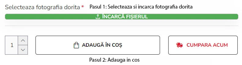 2. Apasati butonul "Adauga in cos" daca doriti sa mai adaugati si alte tablouri din oferta noastra sau "Cumpara Acum" pentru o comanda rapida.